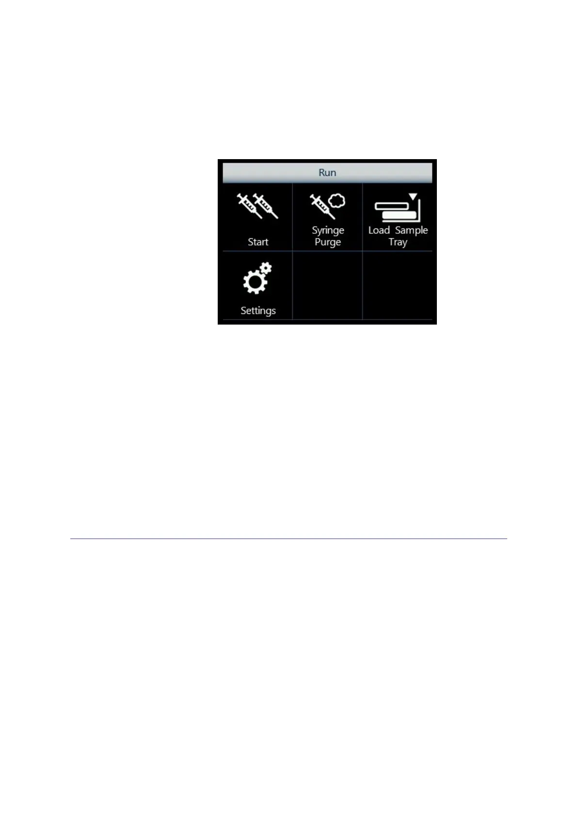 • Settings: accesses other autosampler functionalities and menus (see paragraph 7.6). Tap