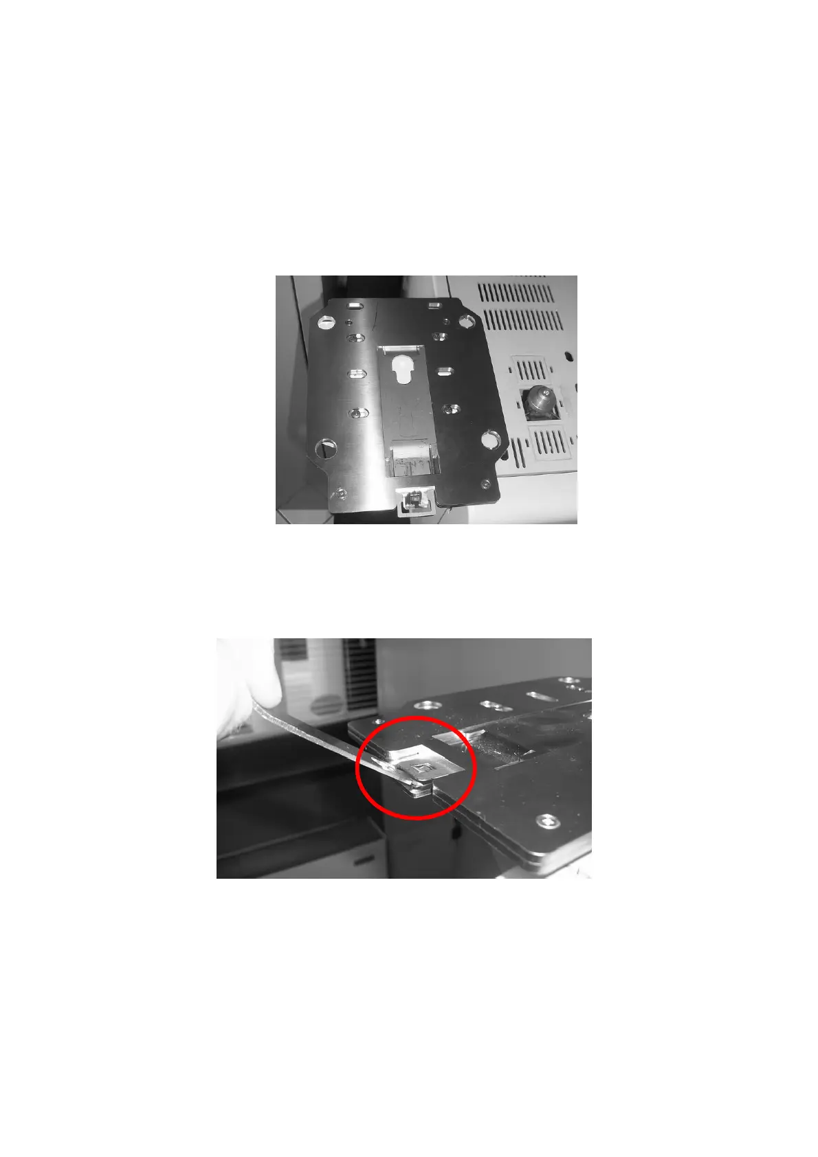 2. Open the mounting plate locker, pulling it out using the syringe pointer shown in the Figure 24. The