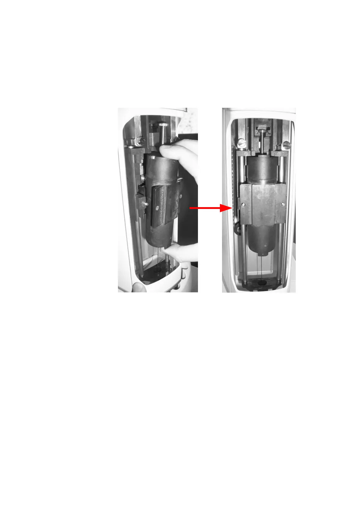 f) Mount the syringe warmer assembly with the new syringe installed in the syringe