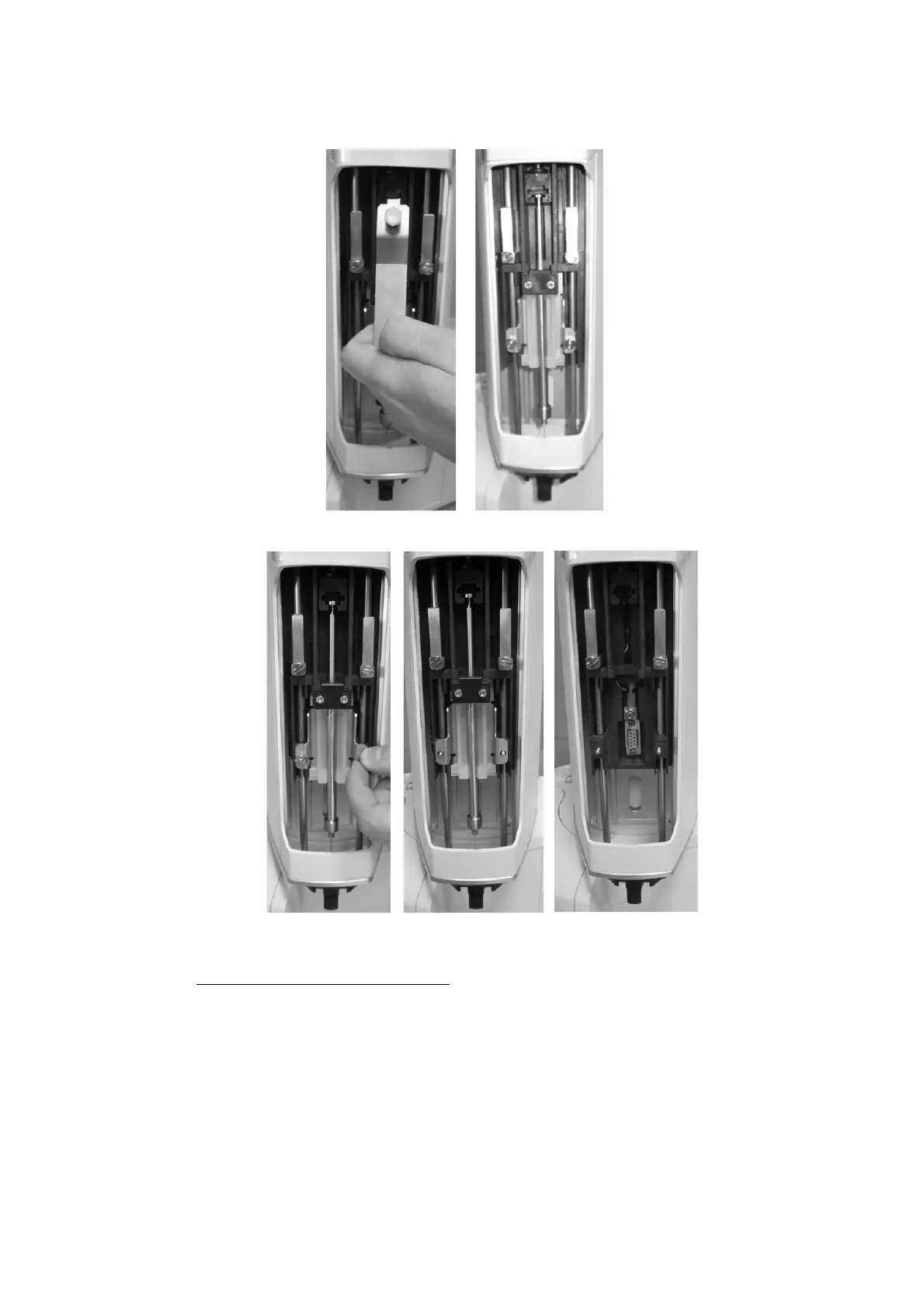 b) Install the syringe warmer assembly. Fix the syringe warmer assembly by aligning the