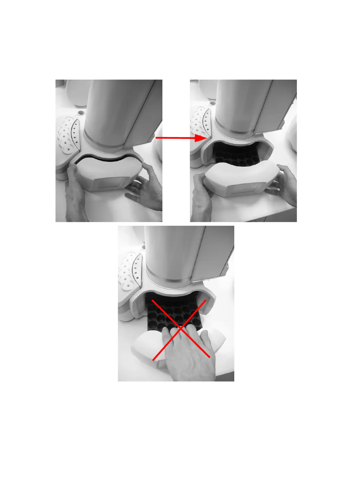 Pull out the tray using both hands, as shown in the Figure 186 (images 1 and 2). Do not pull the