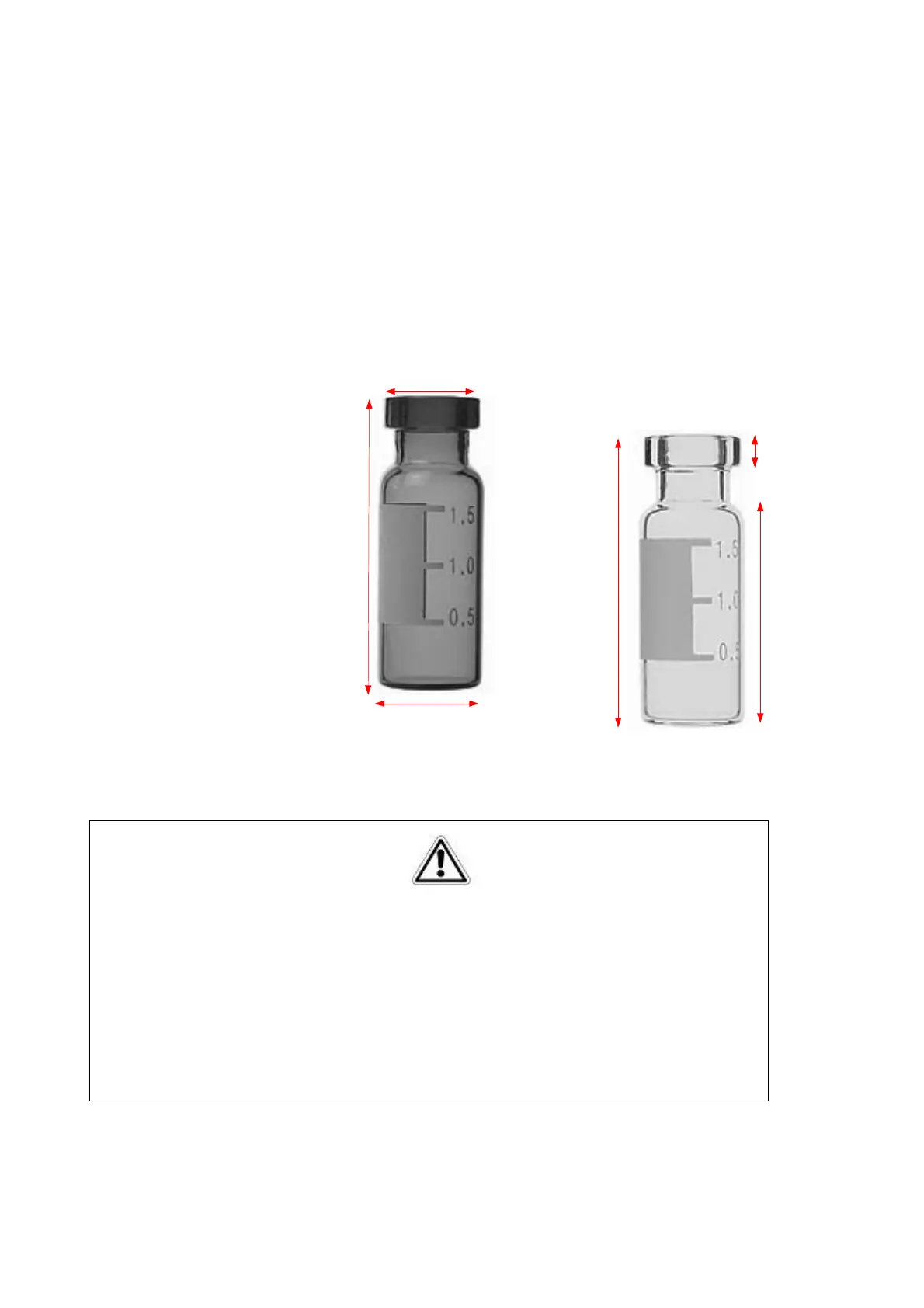 Correct sample vial dimensions are essential for proper operation. Vials and labels that do
