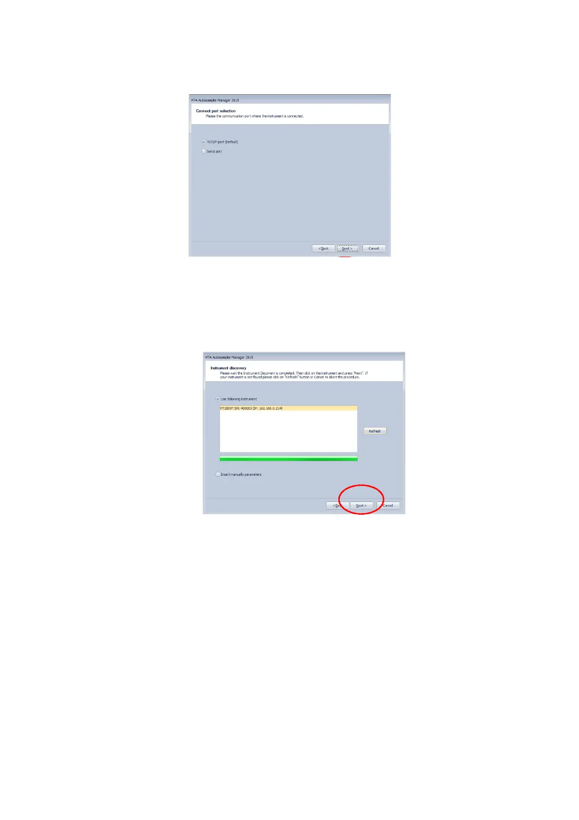 Click on one instrument and then on "Next". If your instrument is not found you can re-try