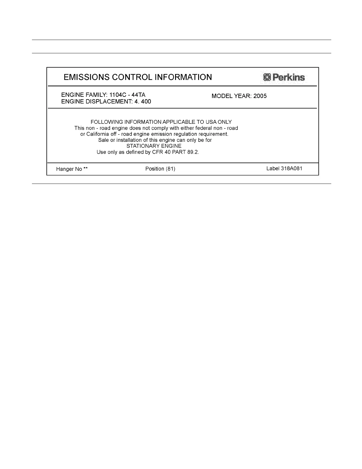 This typical exam ple of a label is installed on engines that are stationary engines.