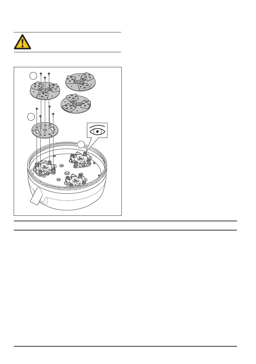 • Quite los discos de amolado (A) y las placas de la