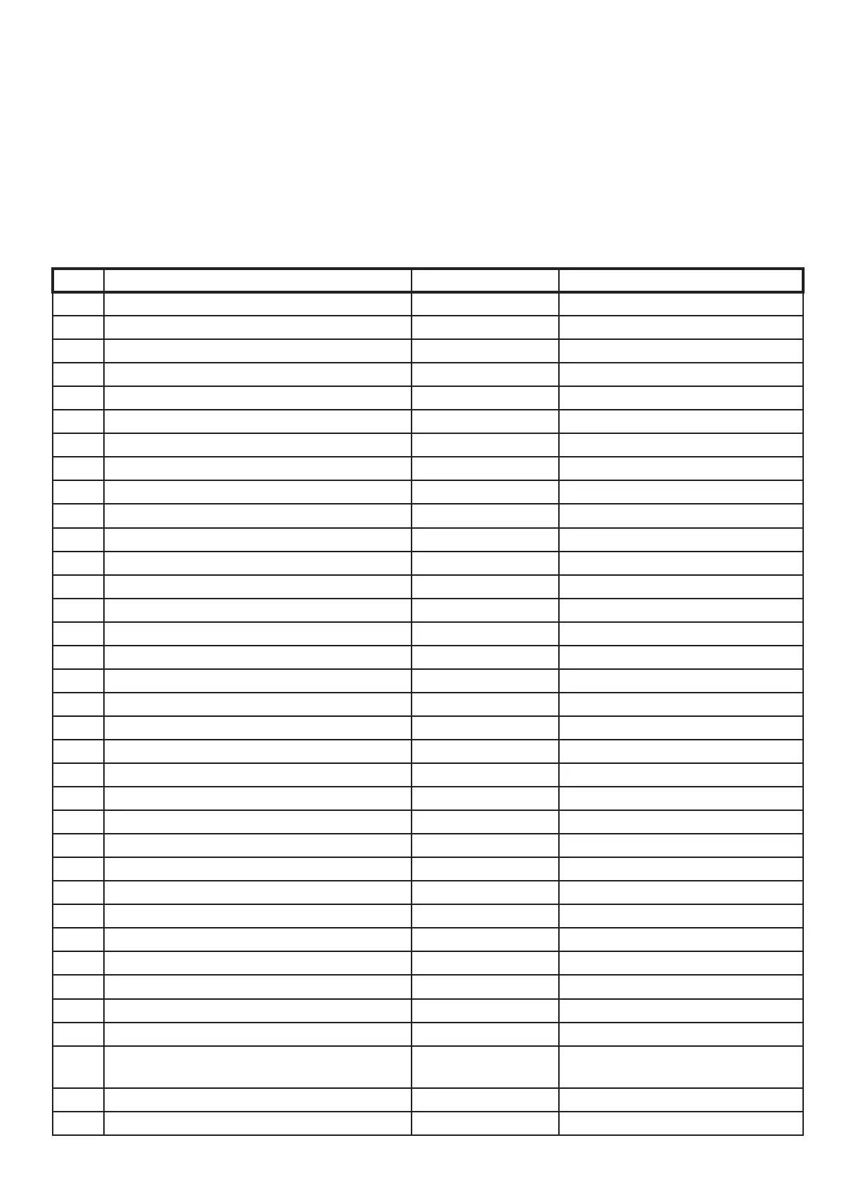 Shown below is a parts list corresponding to the exploded diagram on the previous pages.