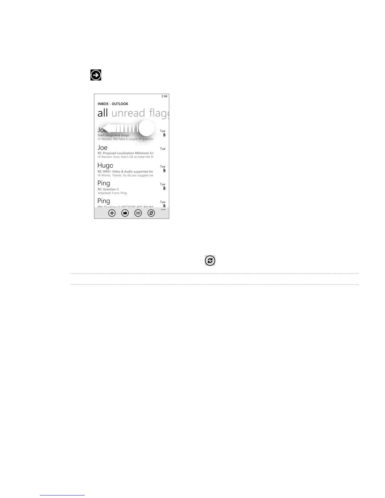 Slide your finger left or right to check only your unread, flagged, or urgent email.