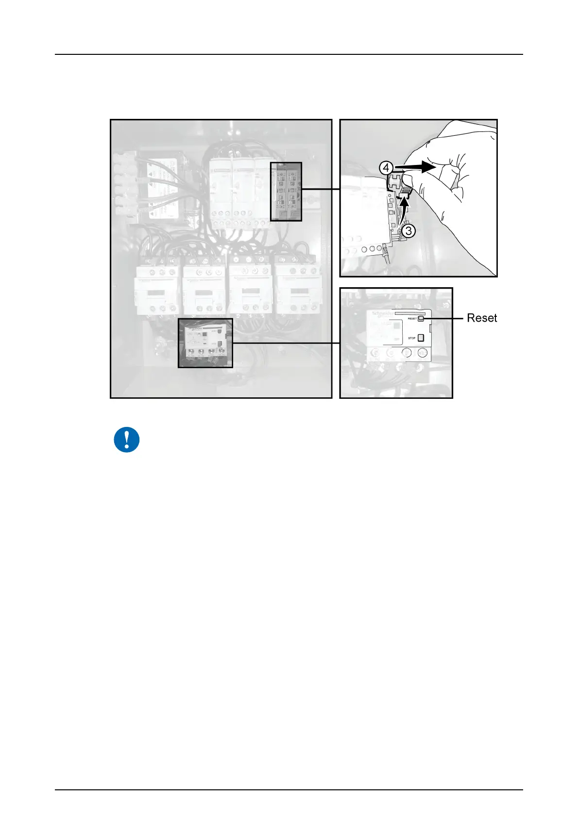 3. Press the motor protection Reset button, see Figure6-4, page42.