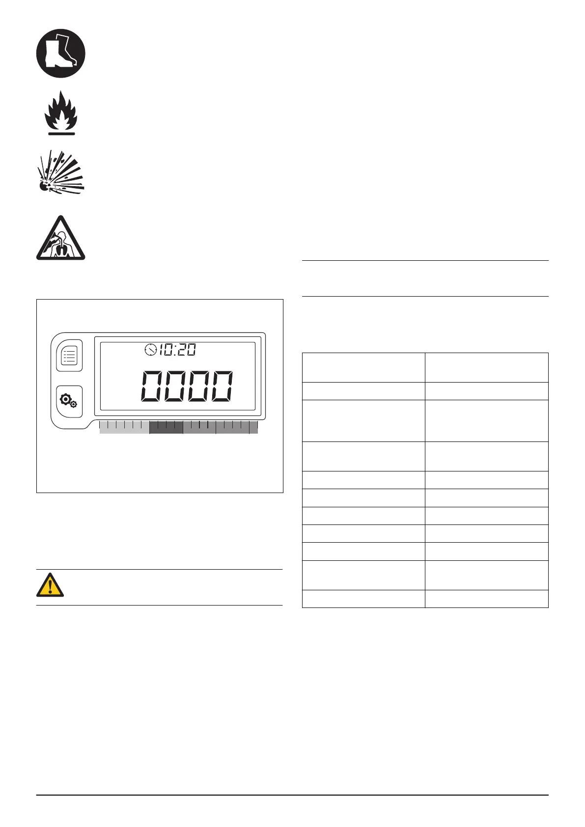 The display shows warning symbols.