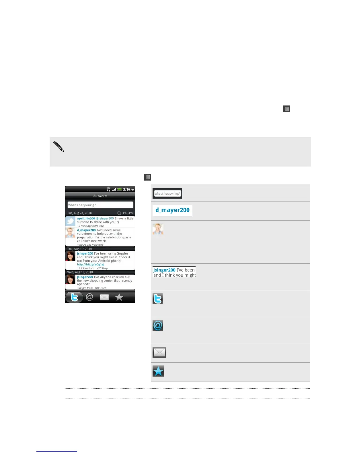§ Add the Twitter for HTC Sense account in Settings > Accounts & sync.