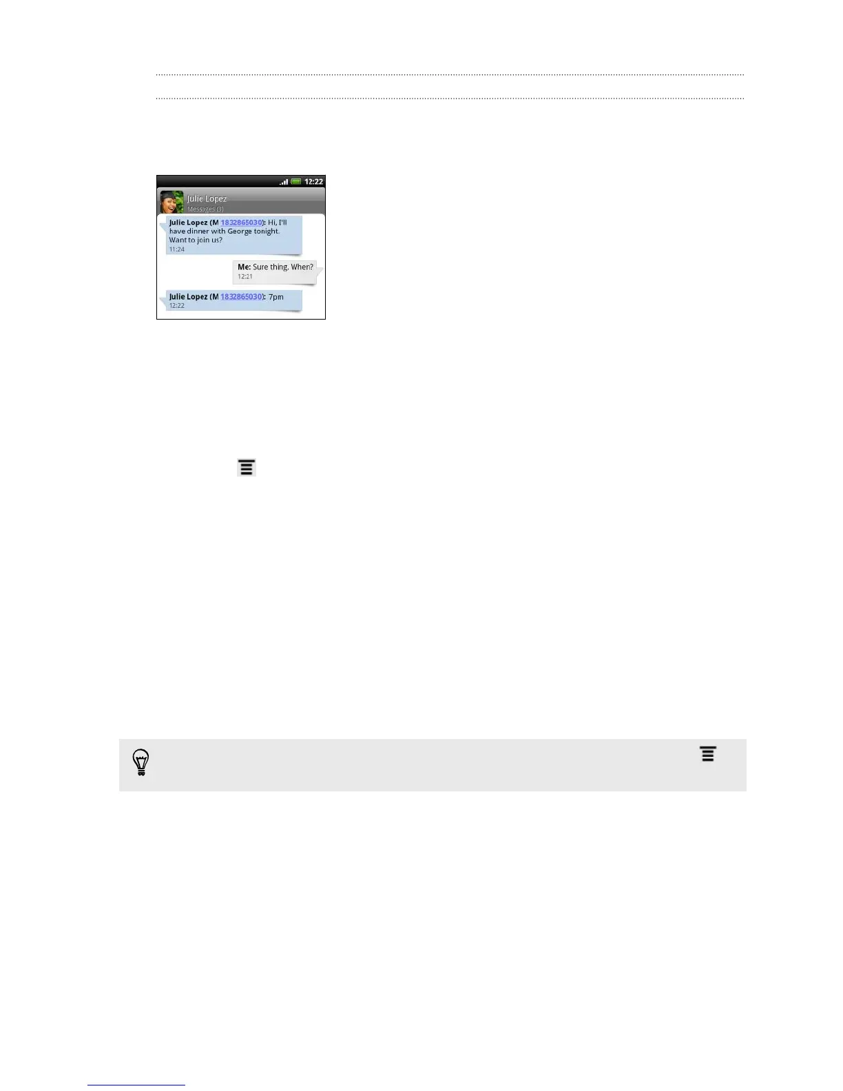 1. On the All messages screen, tap a contact (or phone number) to display the