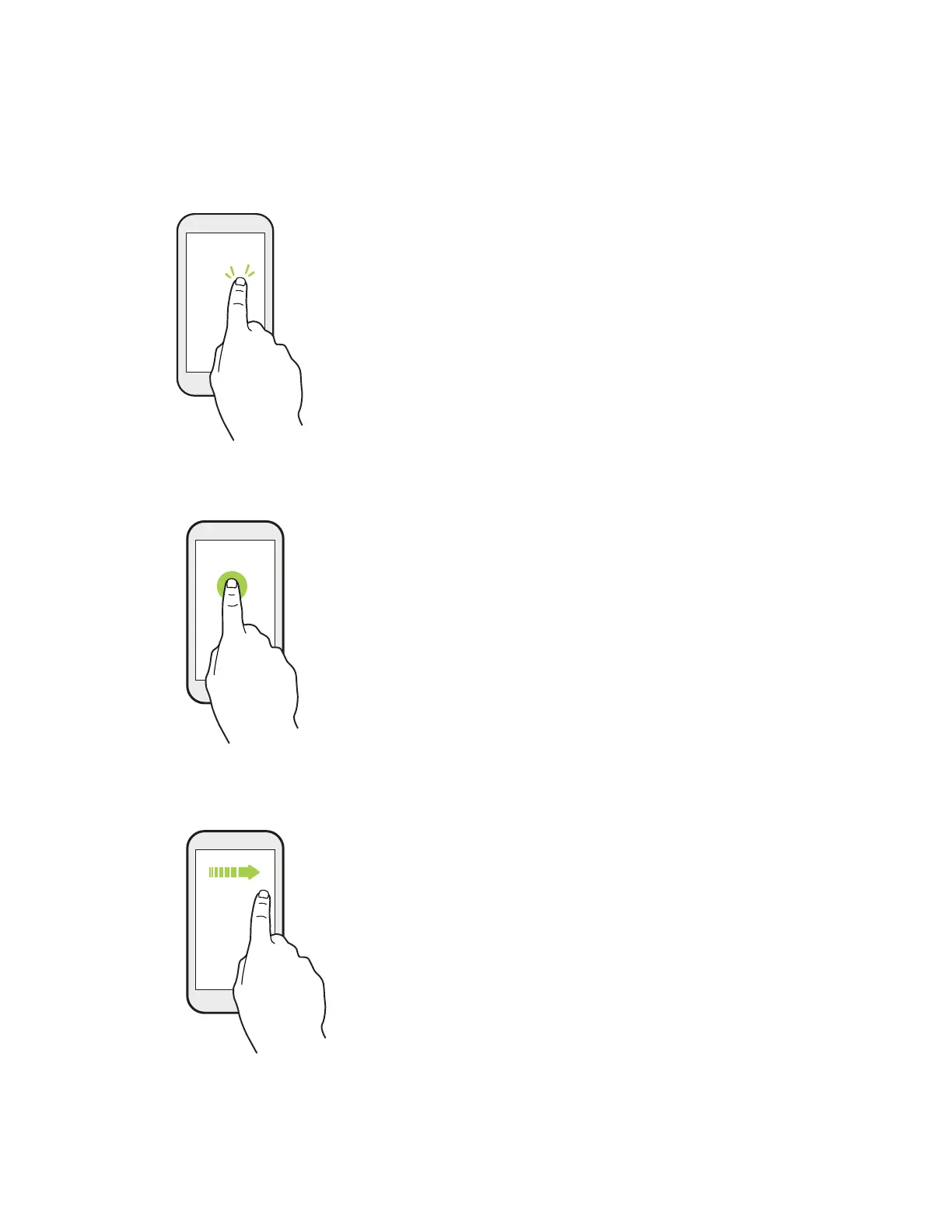 such as application and settings icons, or press onscreen buttons.