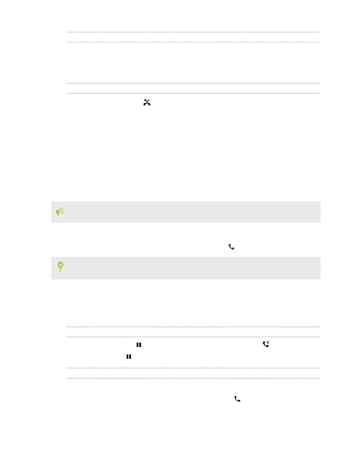 To put the call on hold, tap . The status bar then displays the hold call icon .