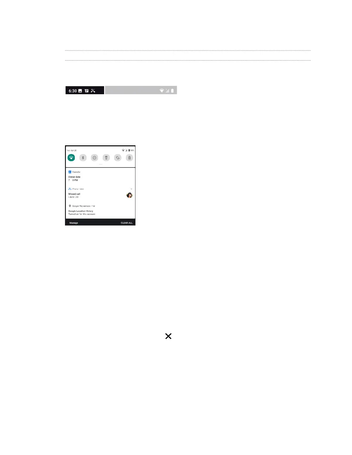 § To dismiss all non-persistent notifications, scroll to the bottom of your notifications, and then