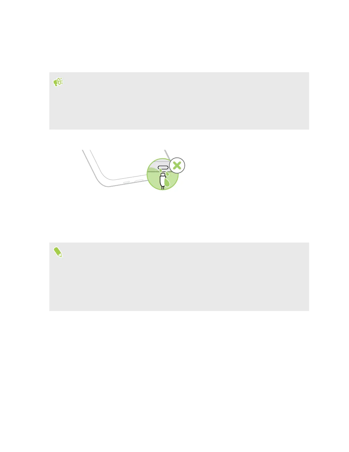 § Use HTC's power adapter and USB Type-C cable to charge the battery. When the battery power