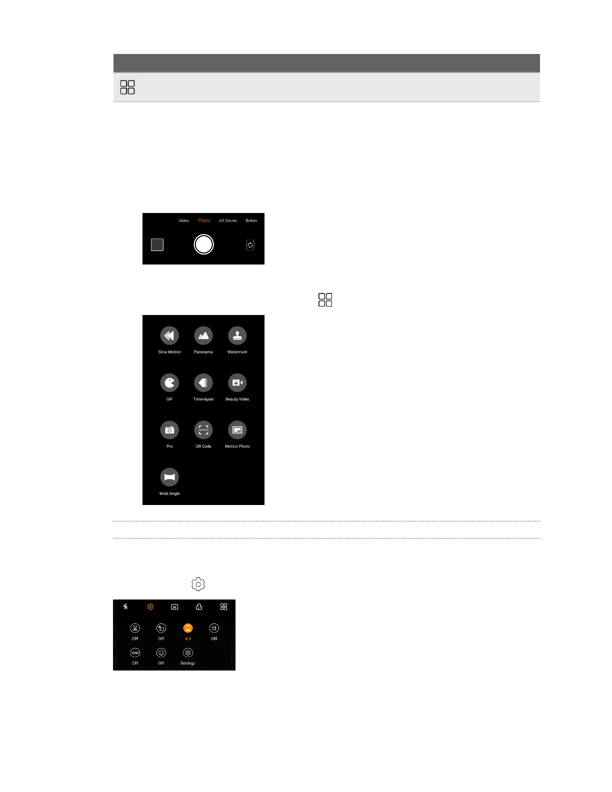 3. To choose from more capture modes, tap , and then tap the mode to use.