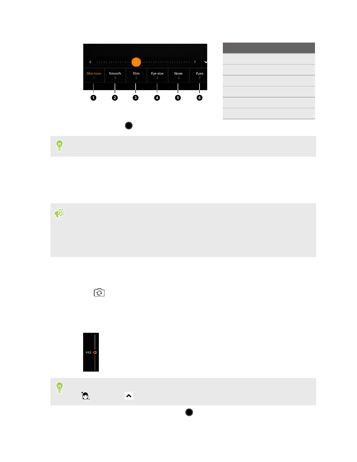 Tap , and then tap to use the Beauty Mode options.