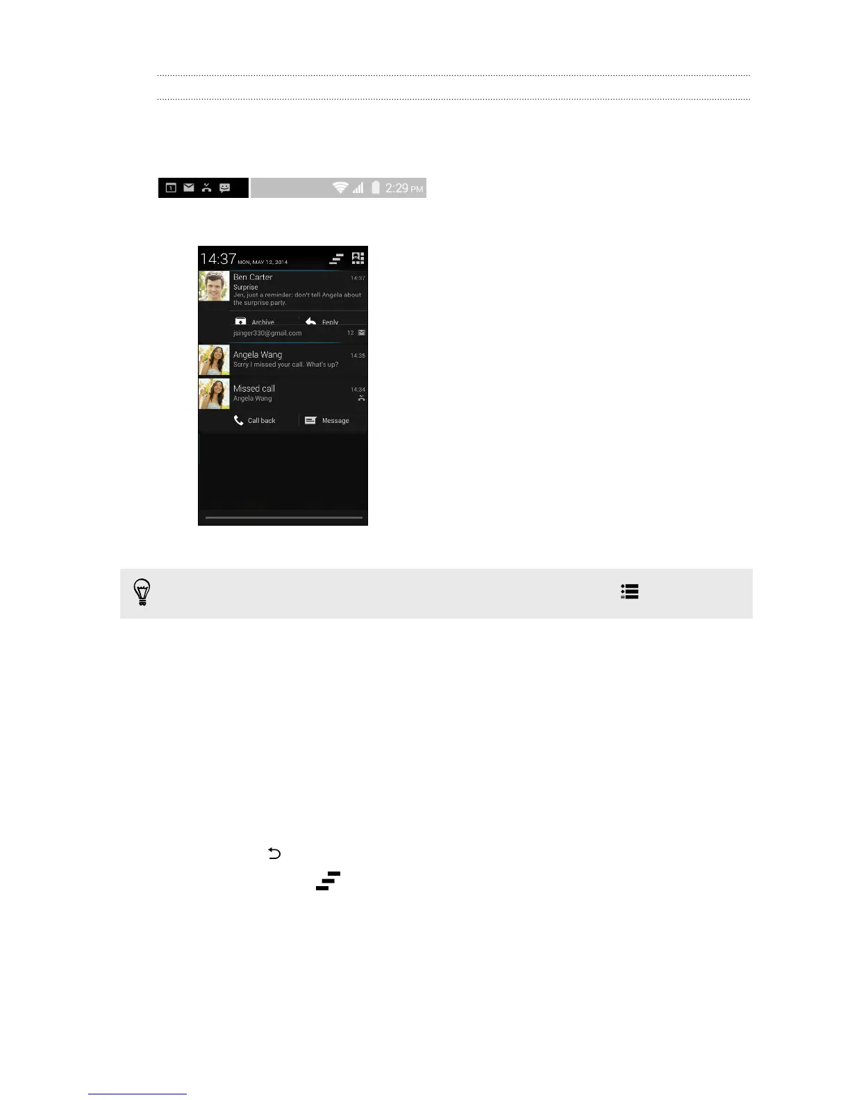 actions. For example, when you have a missed call, tap the available icons