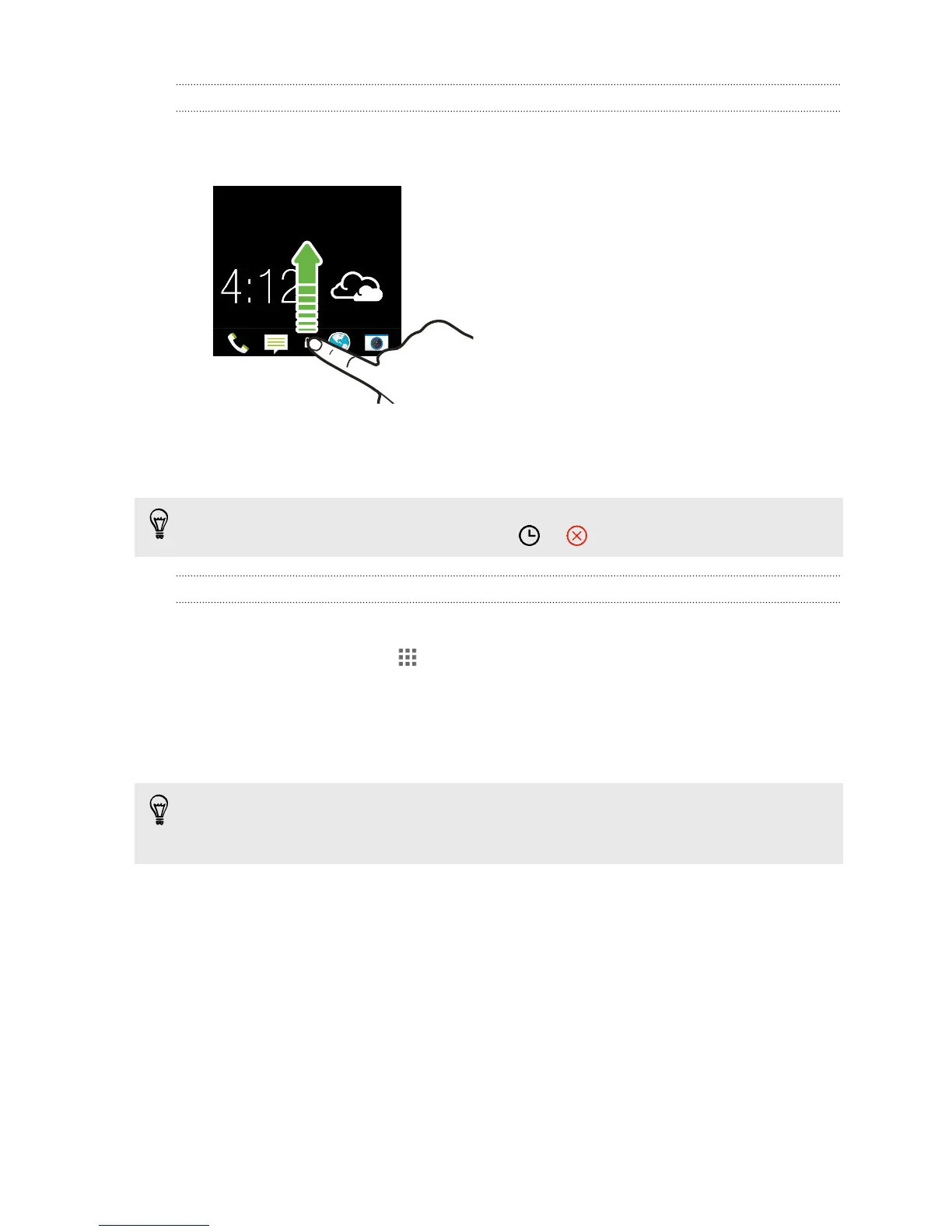 § On the lock screen, drag an app or folder icon up to unlock the screen and