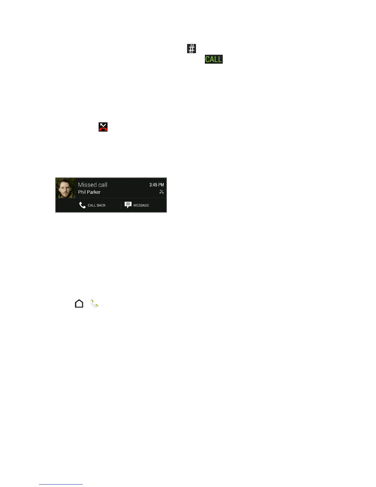 Tip:Youcanalsotouchthenotificationtodisplaycallhistoryandthentouchtheentrytocallit.