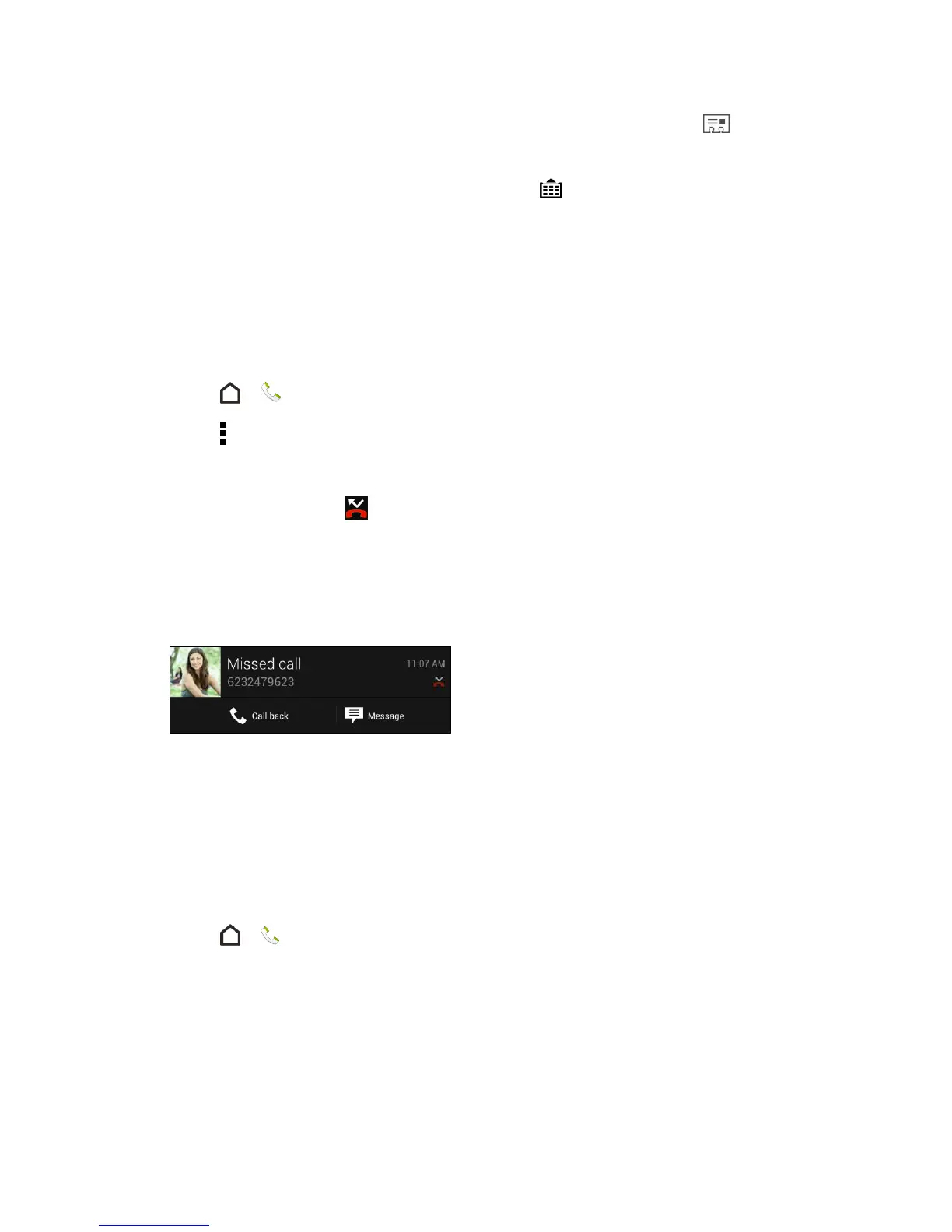 If you have multiple missed calls, touch the missed calls notification to open the Call History