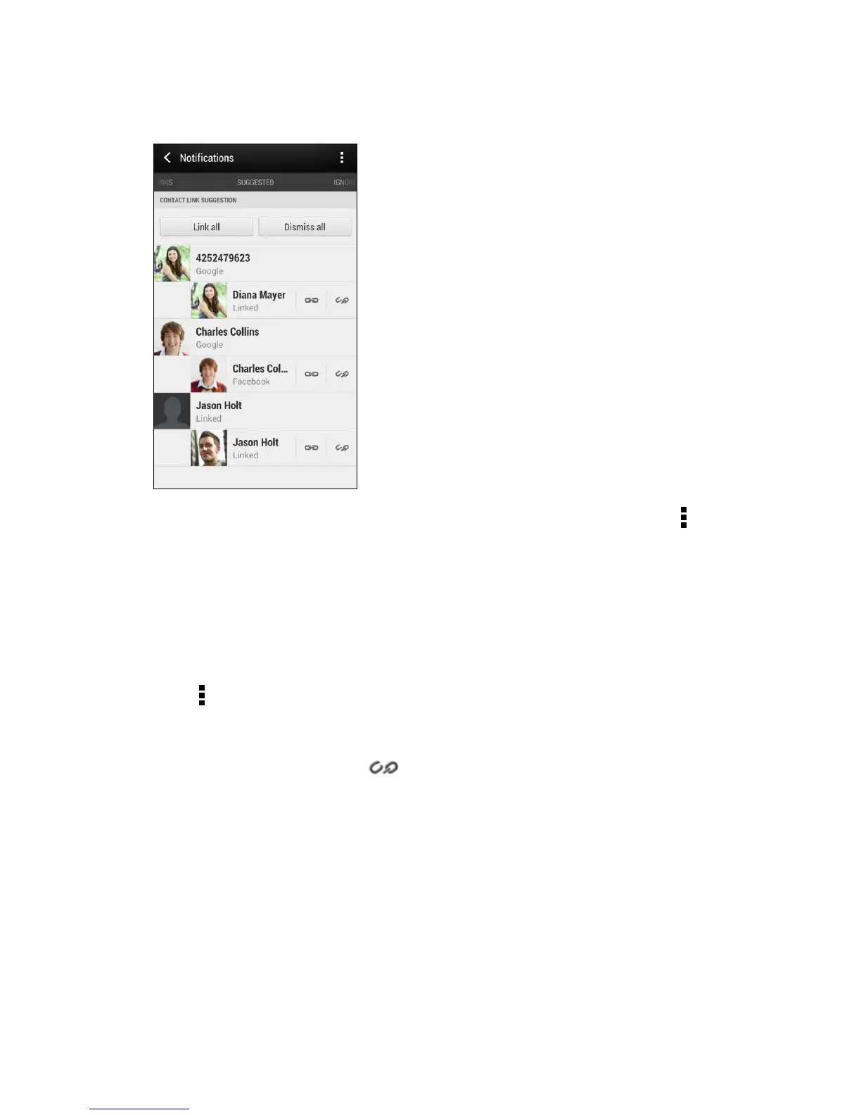 Note: If you don’t want to receive contact link suggestions, on the People tab, touch >