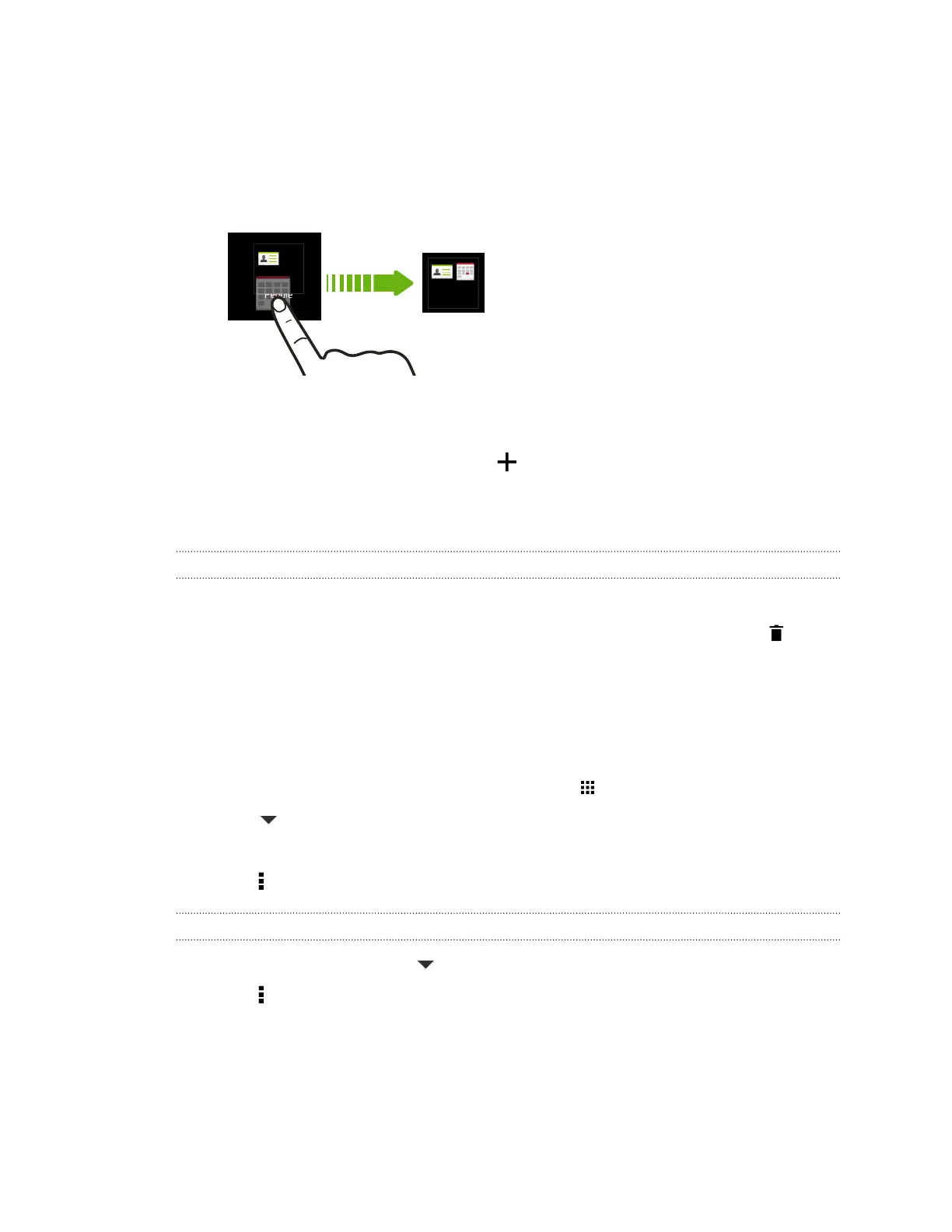 2. Press and hold an app or shortcut in the folder, and then drag it out to .