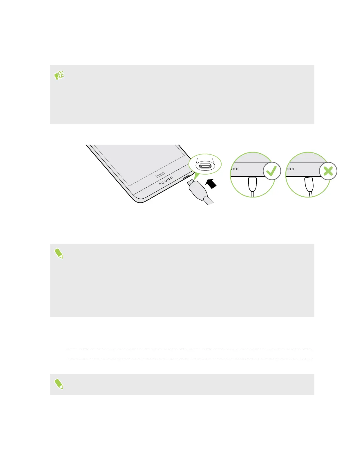 Before you turn on and start using HTC Desire 650, it is recommended that you charge the battery.