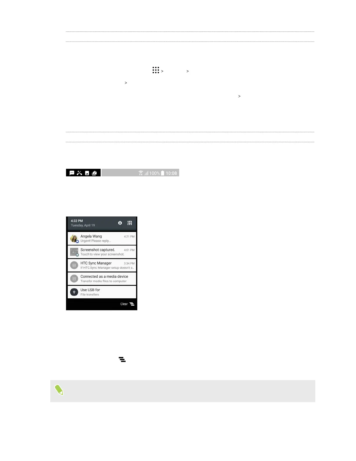 § To dismiss just one notification in the list, drag it left or right. To dismiss all non-persistent