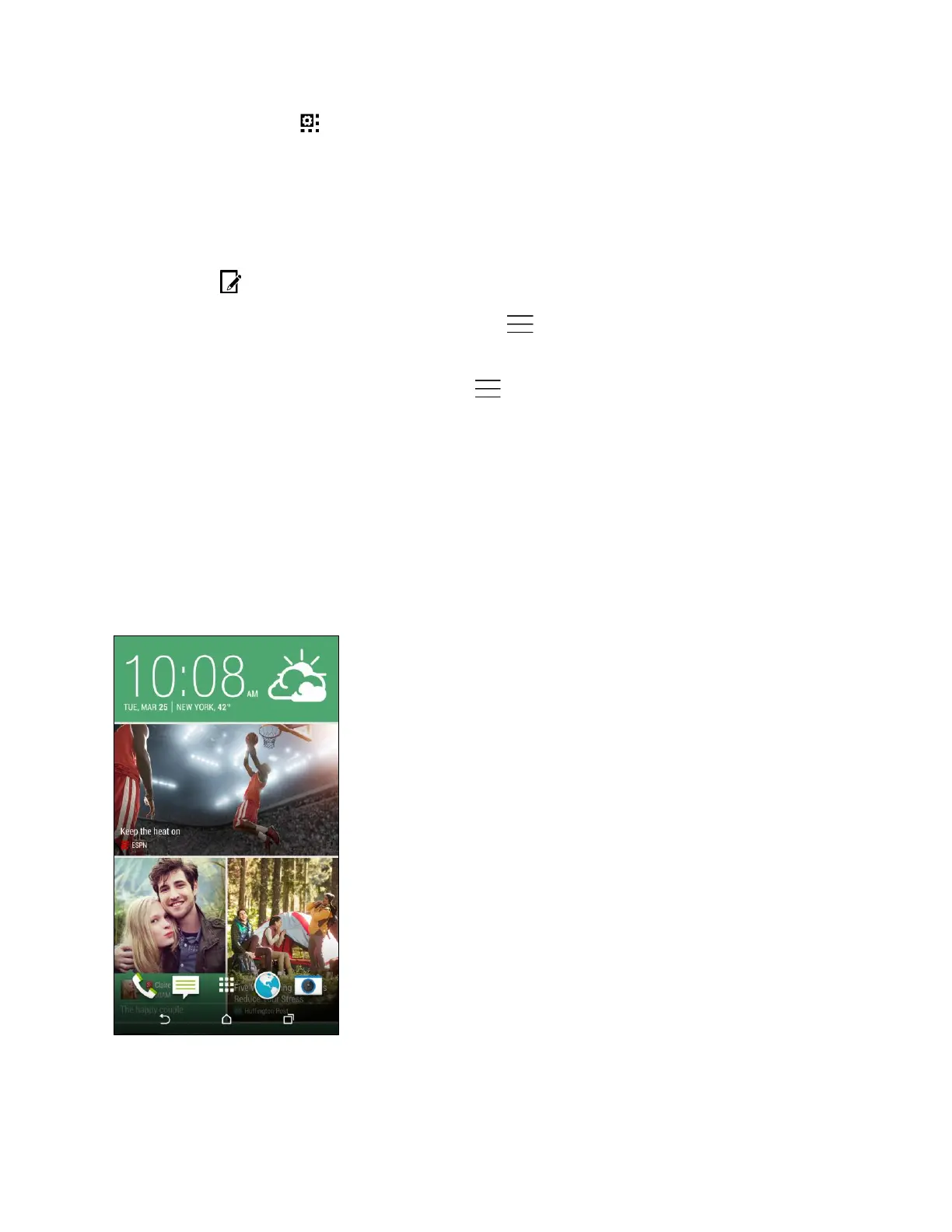 ● Swipe up or down to browse stories on HTC BlinkFeed.