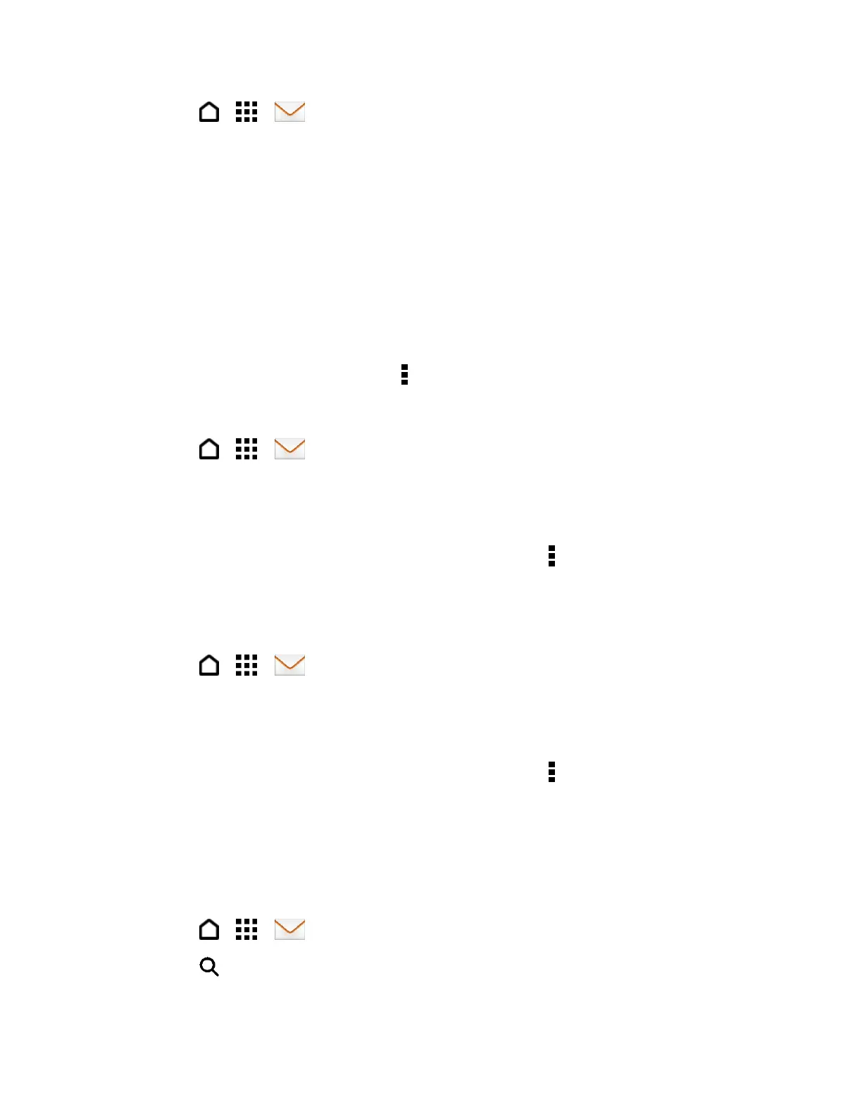 ■ From an email account inbox, touch > Sort, and select from the sorting options.