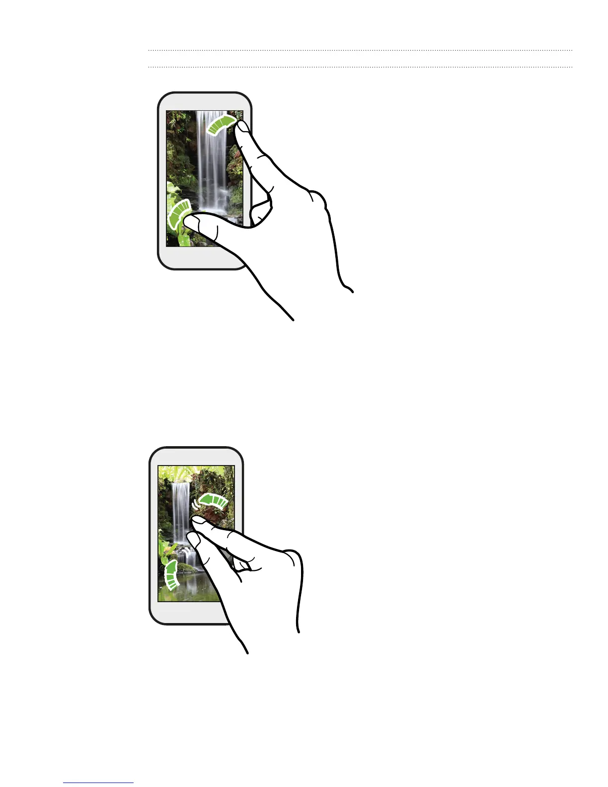 In some apps, like Gallery, Messages, Mail, or the web browser, slide two fingers apart