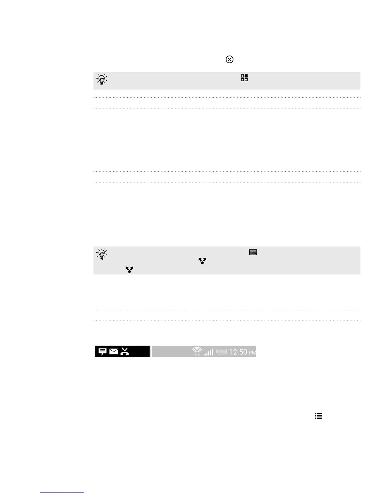 Notification icons inform you of new messages, calendar events, alarms, and activities