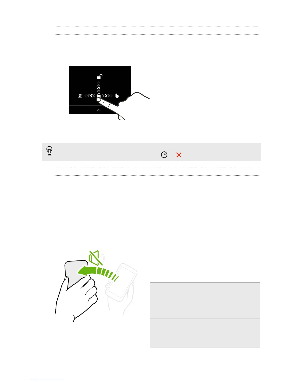 § Swipe up to unlock the screen, swipe right to go directly to HTC BlinkFeed, or