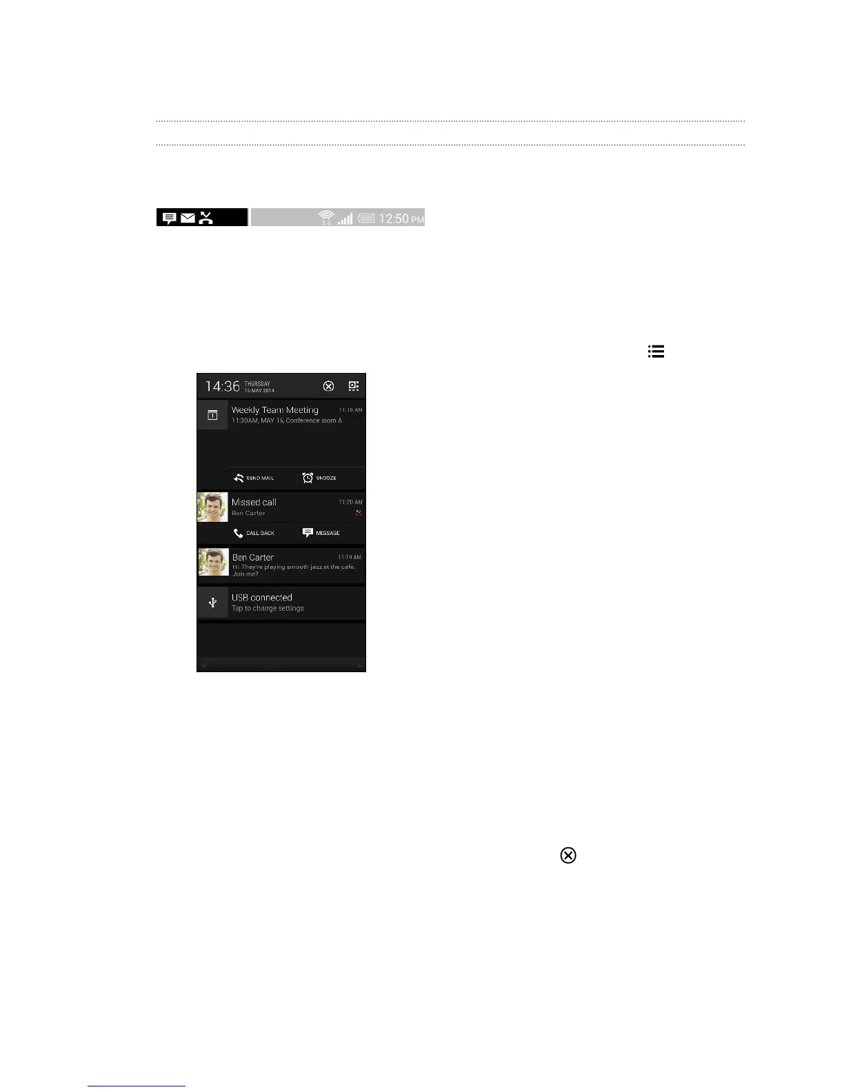 notifications and close the Notifications panel, tap .