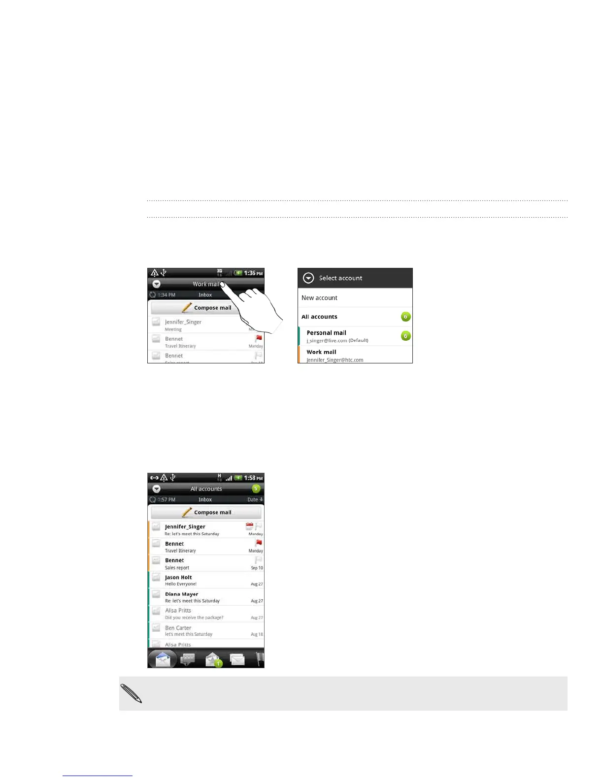 you’ve set up on your phone. To switch between email accounts, tap the bar that