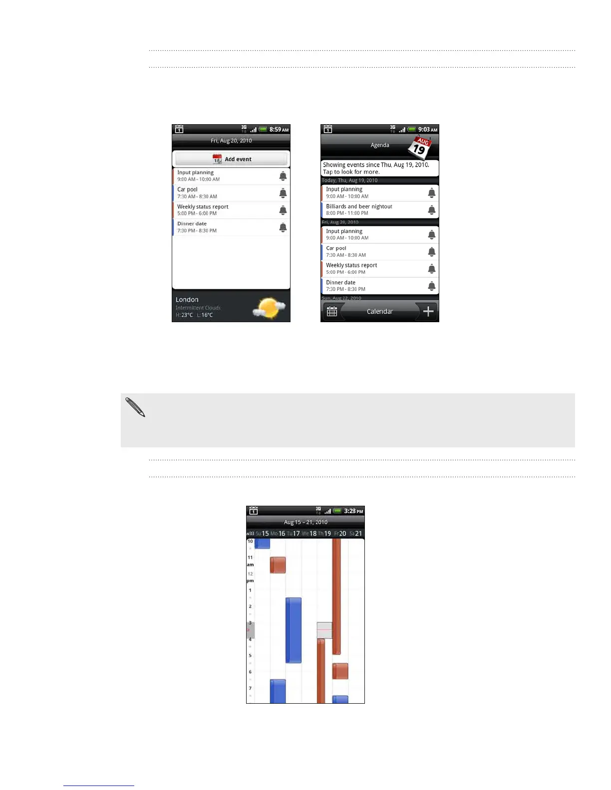 at the bottom of the screen when you’re viewing events of the current day. Agenda