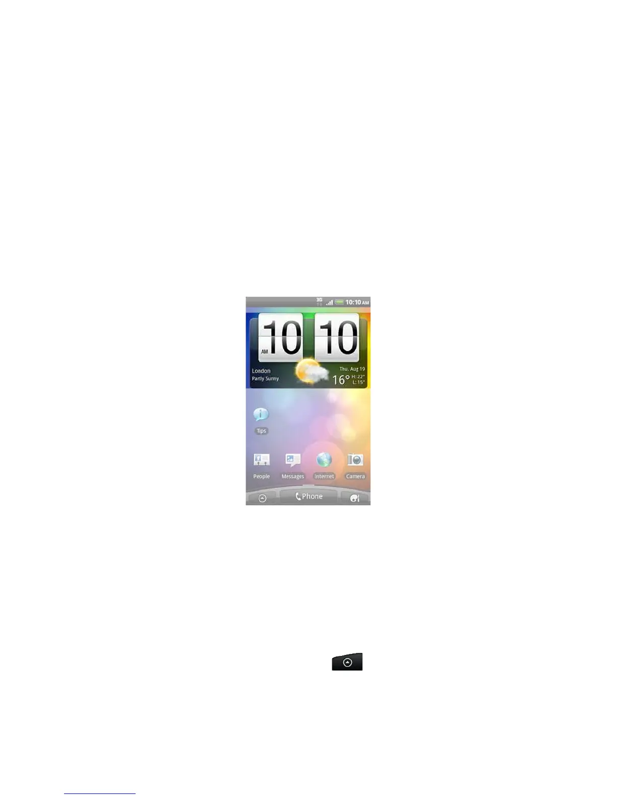 Use the HTC Clock widget to see your current date, time, and location. It’s added by