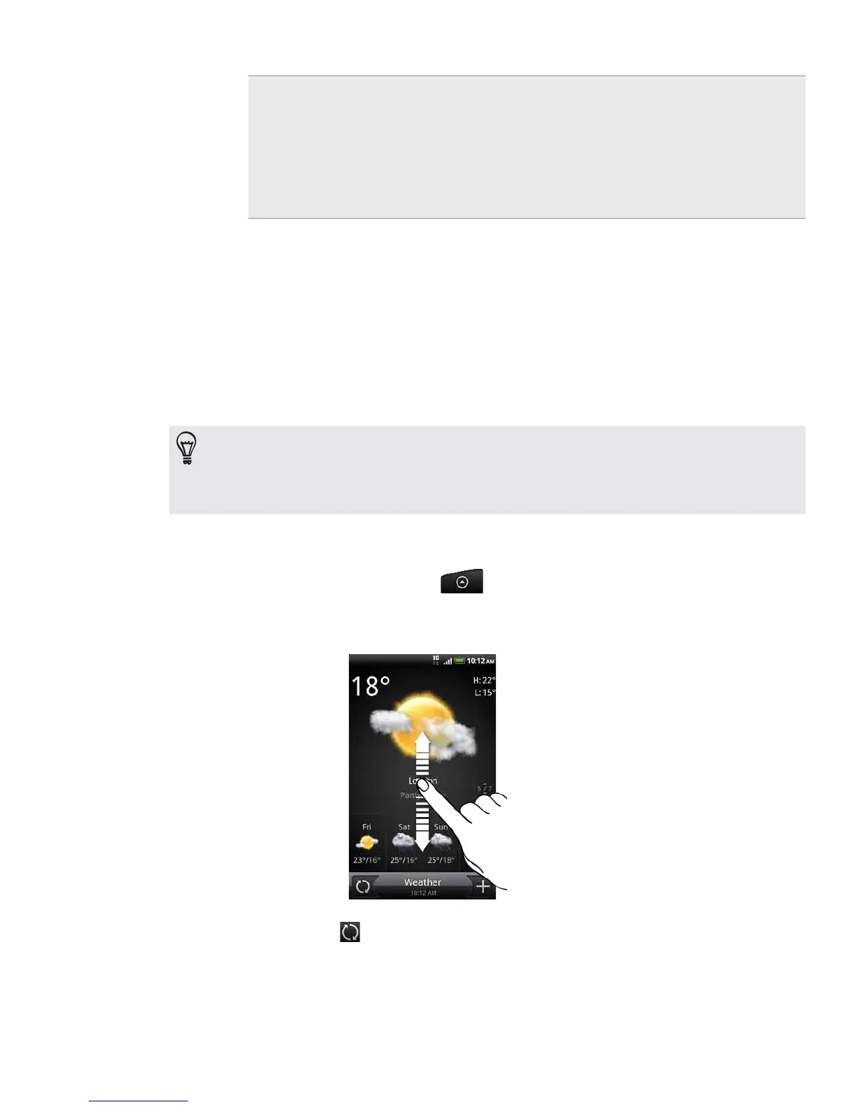 the weather in other cities, swipe your finger up or down the screen.