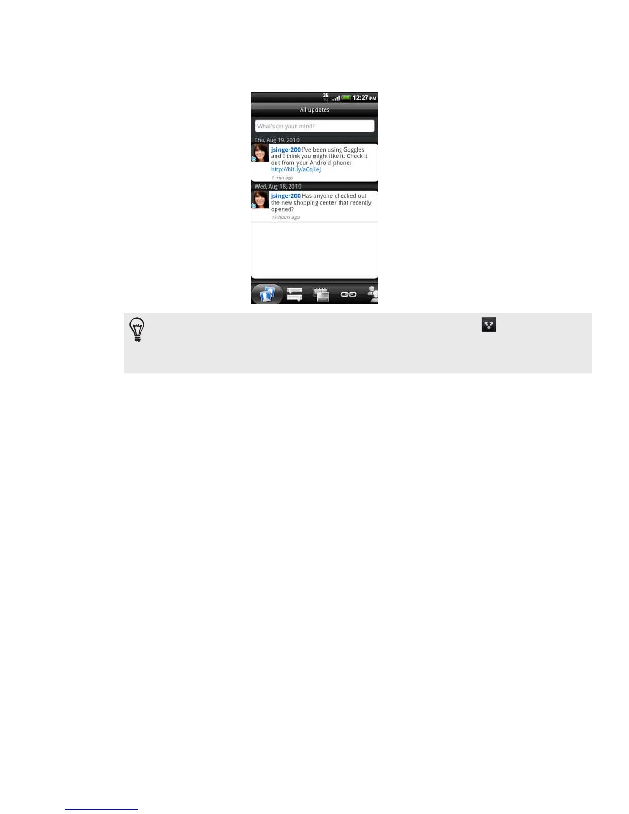 While entering your status update in Friend Stream, you can also tap to choose from