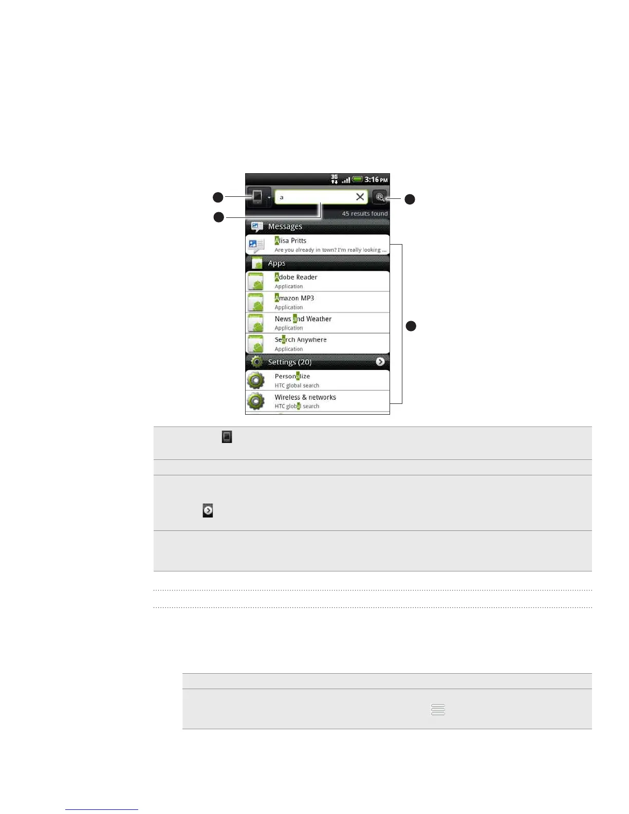 Find all types of information on your phone and the Web. Search Anywhere sifts