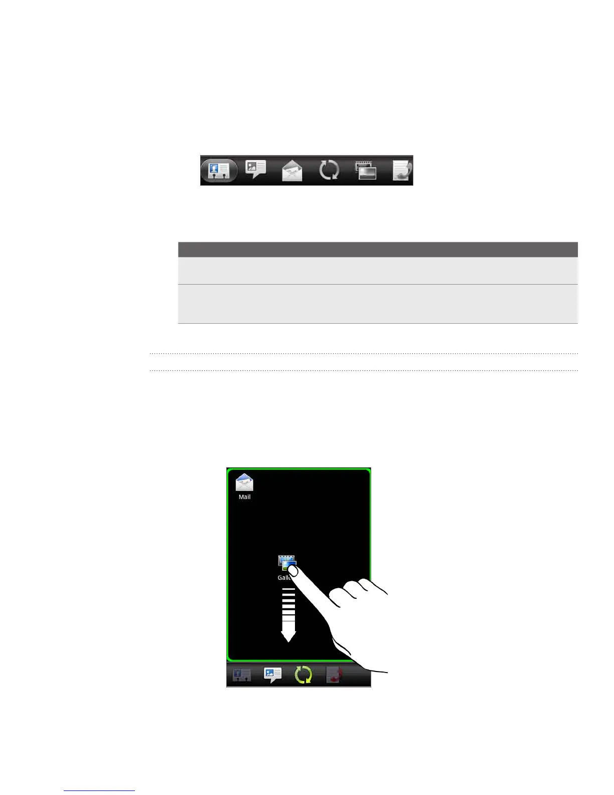 2. Press and hold a tab. When the screen changes and shows you an empty area,