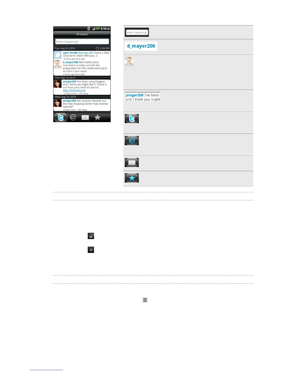 message, retweet, and more.