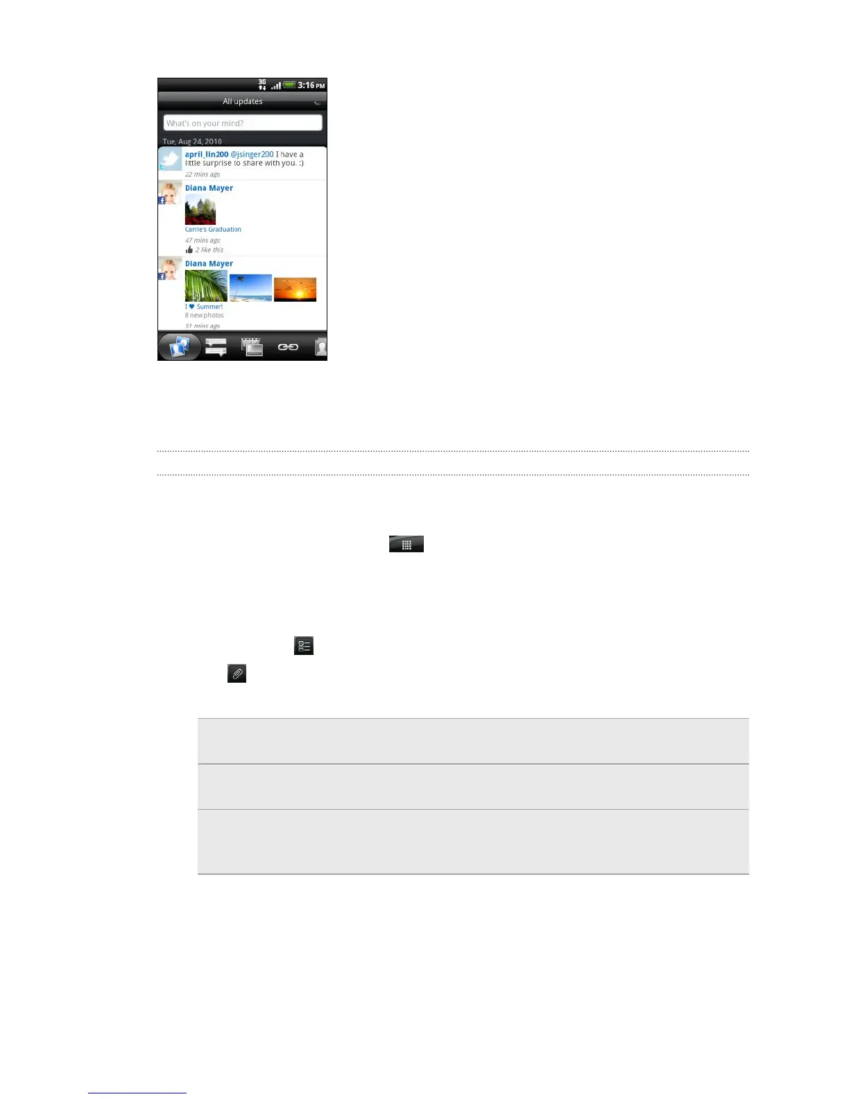 Slide to the other tabs to view social network updates grouped as status updates