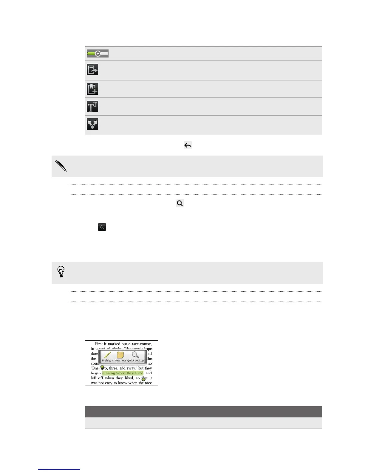 Adding a note or highlighting selected text