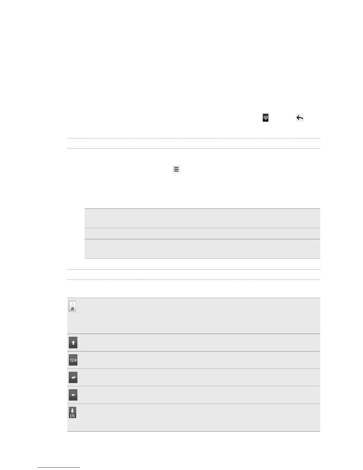 Use the following keys while entering text using the onscreen keyboard: