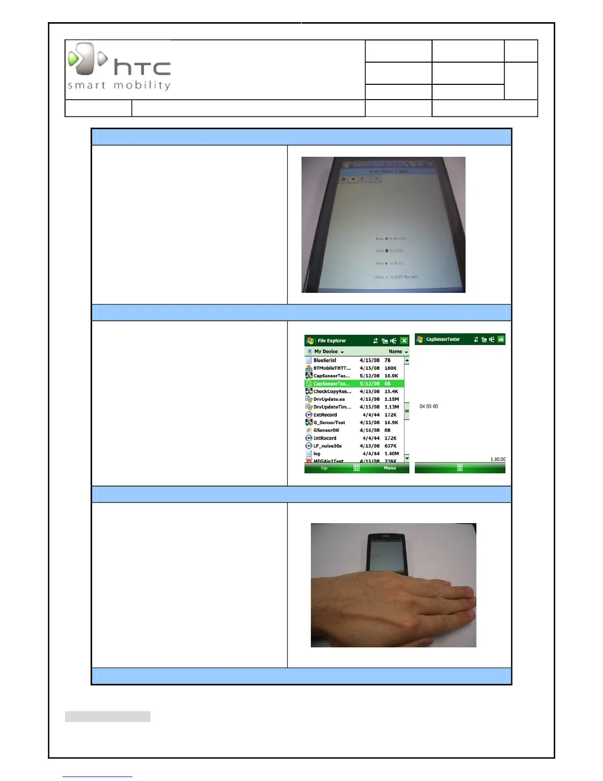 1. Install CapSensorTest tool to device.