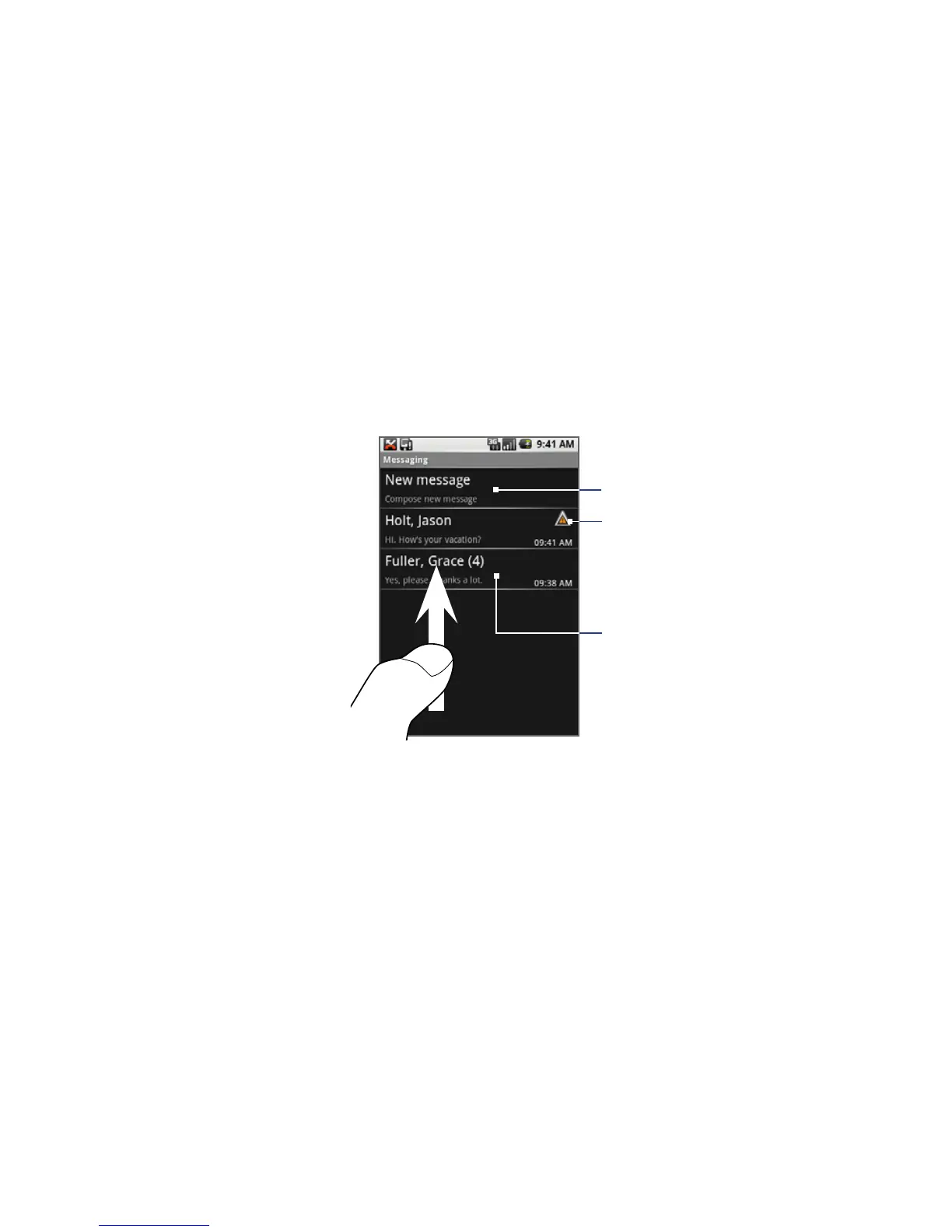 To open the Messaging application, press HOME, touch the Applications tab, then