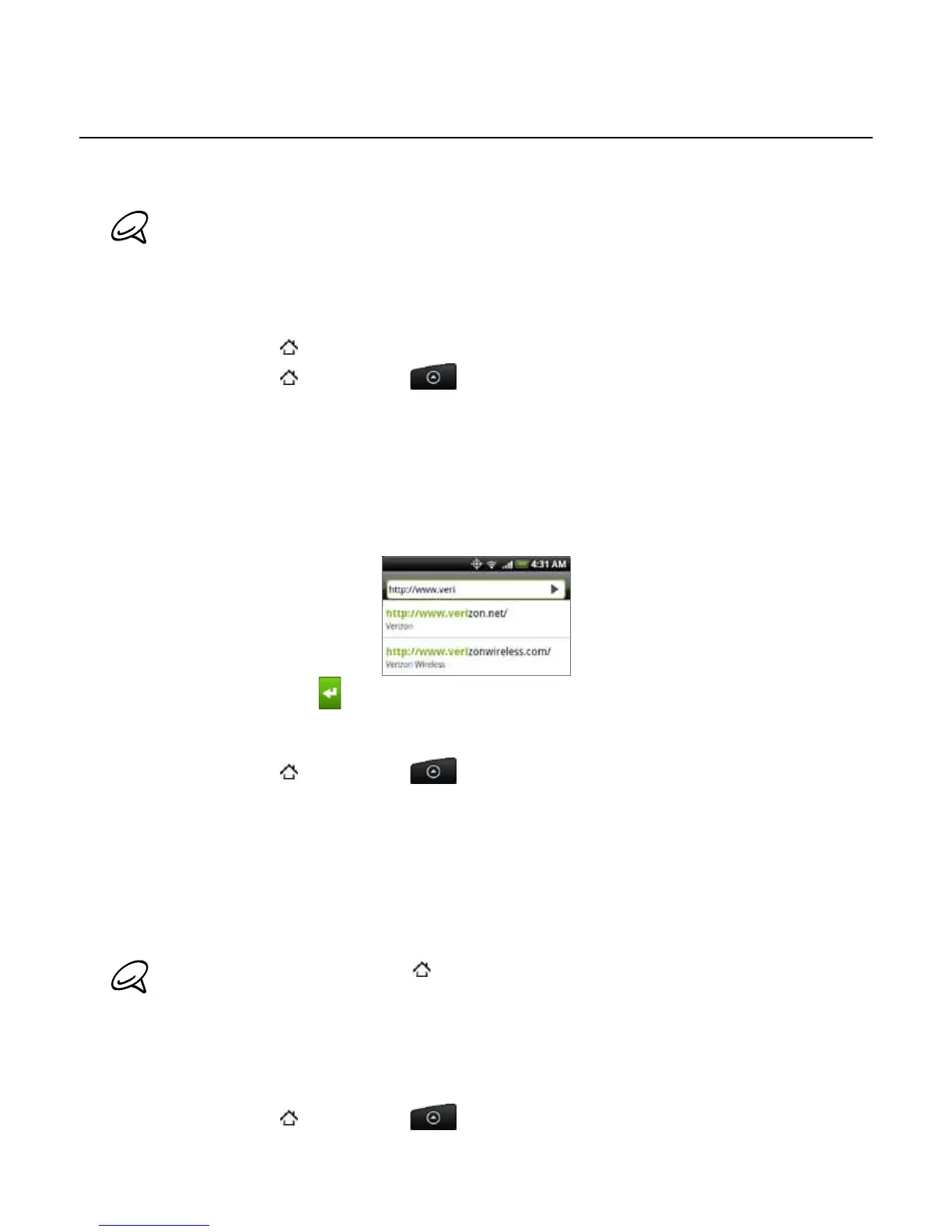 On the browser screen, press MENU and then tap the URL field on top of the screen.