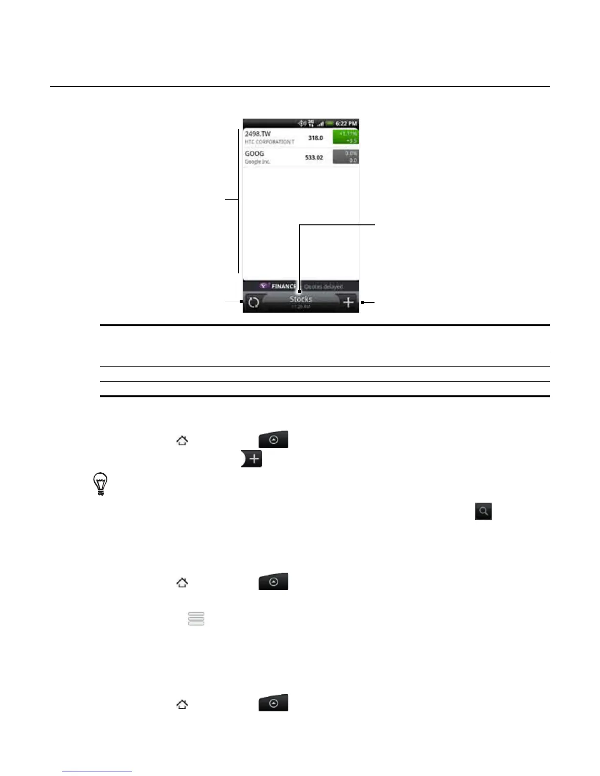 Enter the stock quote or stock market index on the text field, and then tap .
